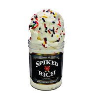 Moist Cake Batter Ice Cream Filled with Colorful Rainbow Sprinkles and Streaks of Cake Icing.